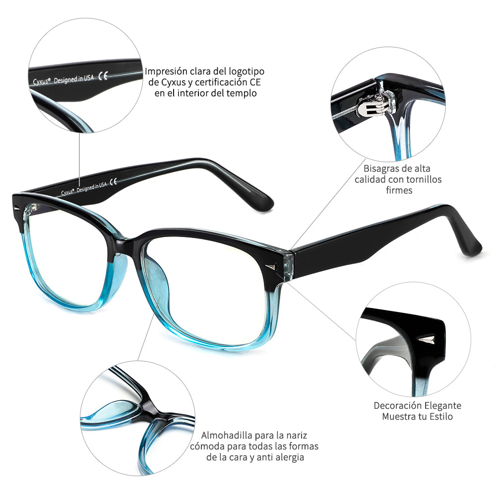 ブルーライトカット -- Cyxus コンピューター グラス 8501 は、有害なブルー レイを防止し、高エネルギーの可視ブルー ライトと UV400 の有害な影響から一日中保護します。